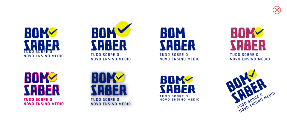 Usos incorretos prejudicam a credibilidade e reconhecimento. Por isso, a marca deve ser sempre aplicada de acordo com os padrões definidos nesse manual – não desloque ou rotacione os elementos, não aplique efeitos, bordas ou sombras, não remova elementos e nem distorça ou altere a proporção e ordem dos elementos.