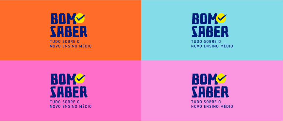 A marca pode ser aplicada sobre todas as cores da identidade; sempre respeitando os limites de contraste com o fundo.