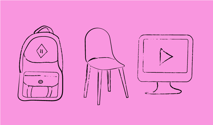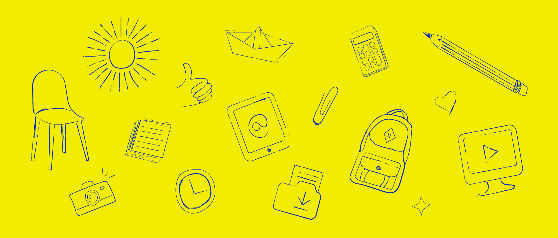 Os ícones foram feitos com traços simples, de caráter ilustrativo, trazendo personalidade e naturalidade aos desenhos. É importante garantir a fácil compreensão e relação com universo escolar.