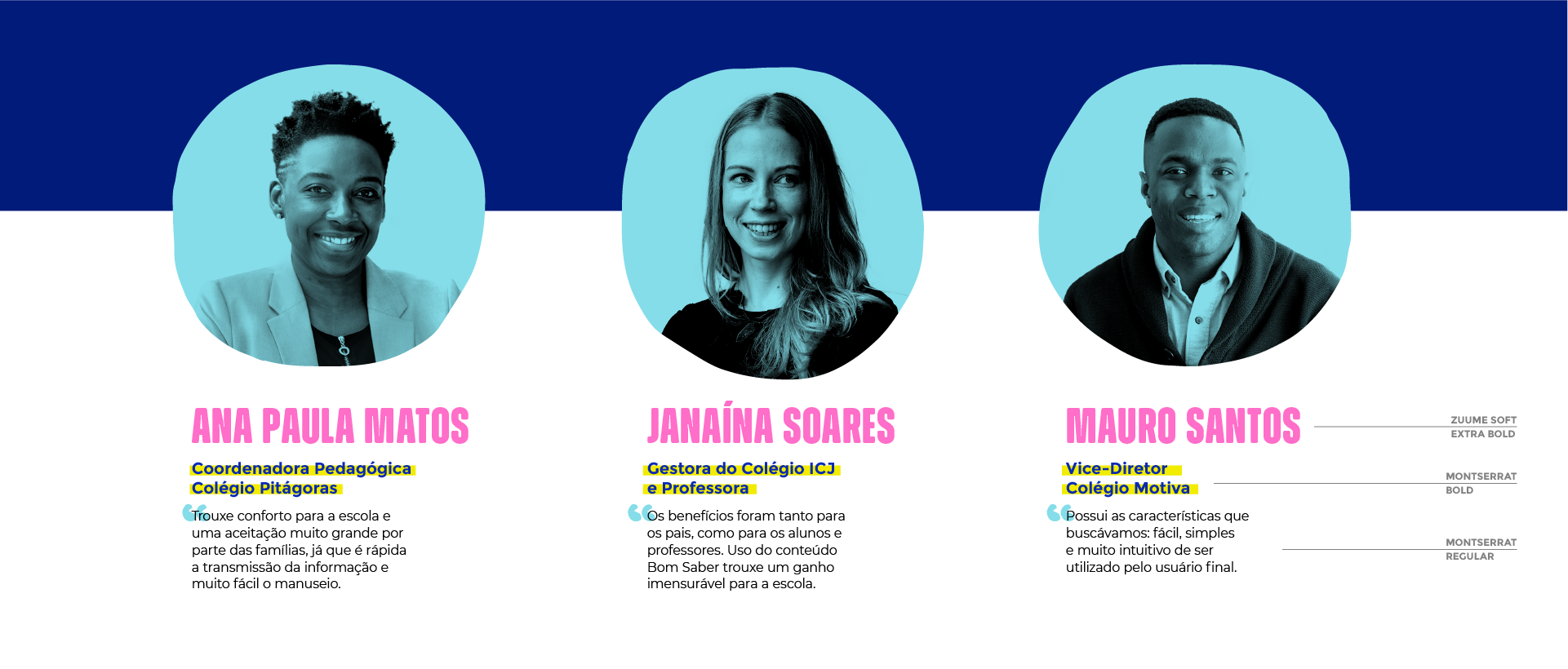 A escolha tipográfica de uma marca é essencial para criar um universo visual consistente. O Bom Saber conta com três famílias distintas para materiais institucionais e, na impossibilidade de estas serem aplicadas, uma tipografia de sistema.