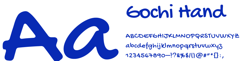Gochi Hand é um tipografia manuscrita que foi pensada para ser utilizada apenas em destaques e citações, simulando pequenos rascunhos escritos à mão.